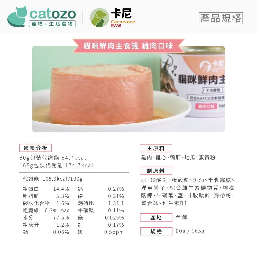 卡尼// 貓咪鮮肉主食罐 雞肉口味 80g