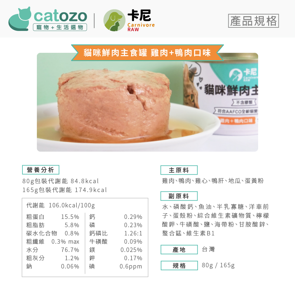 卡尼// 貓咪鮮肉主食罐 雞肉+鴨肉口味 80g