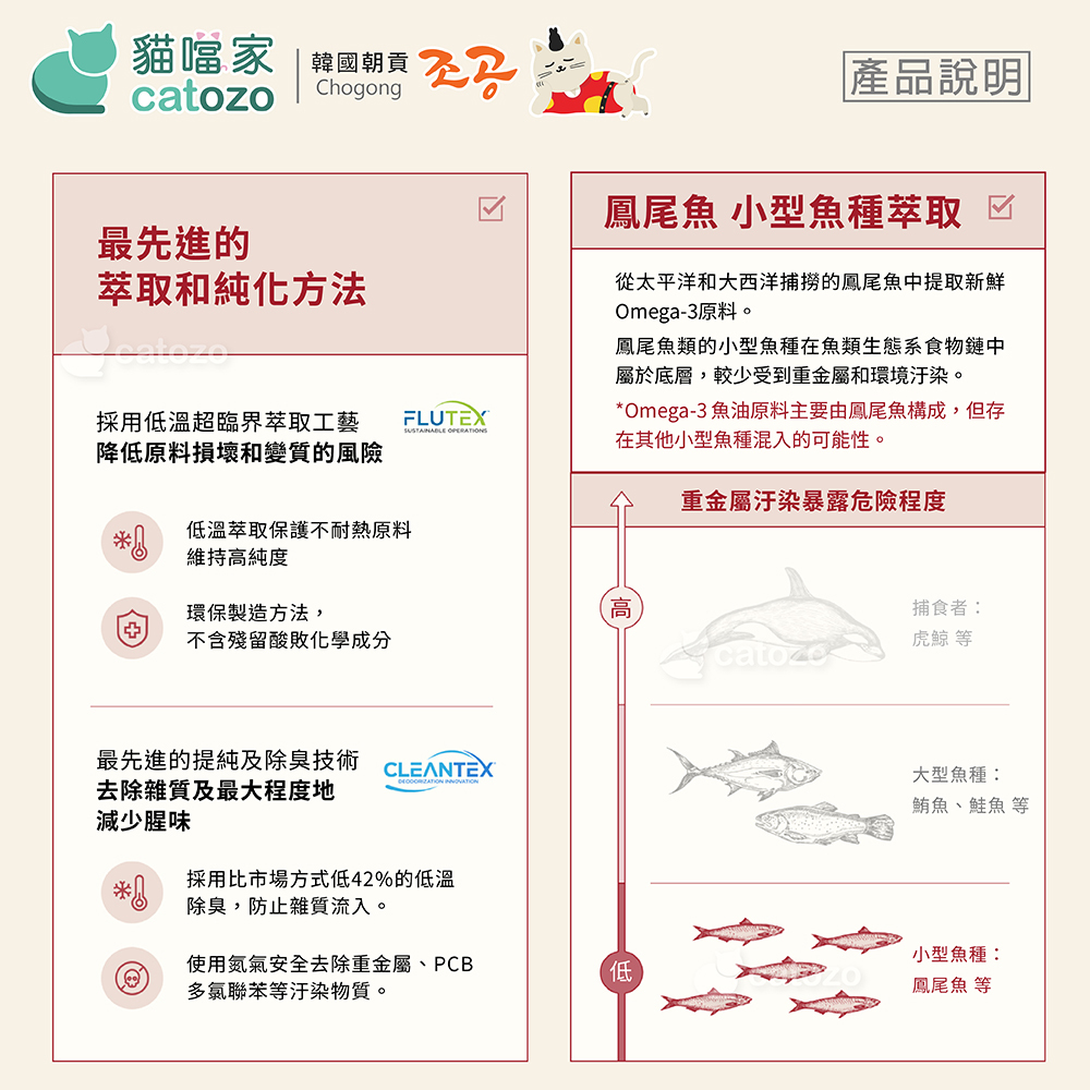 .鳳尾魚等小型魚種,使用低溫萃取法