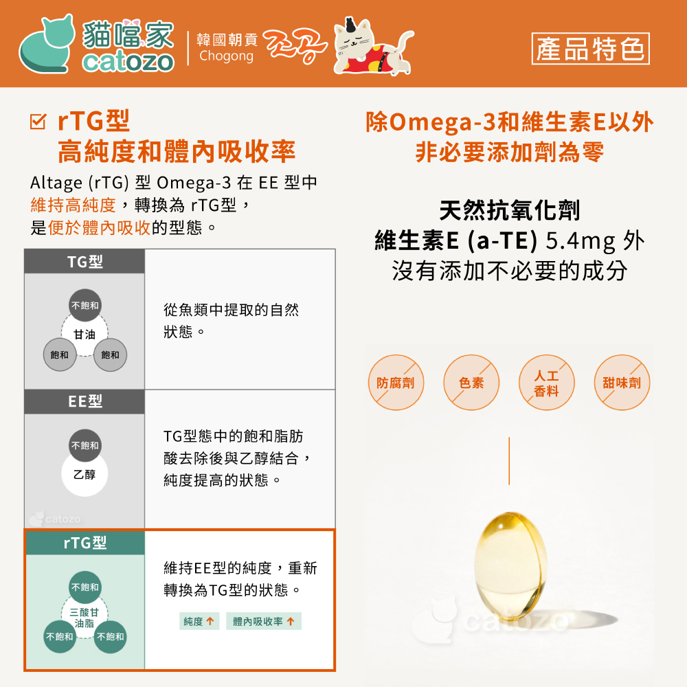 .rTG 型 Omega-3 不含飽和脂肪