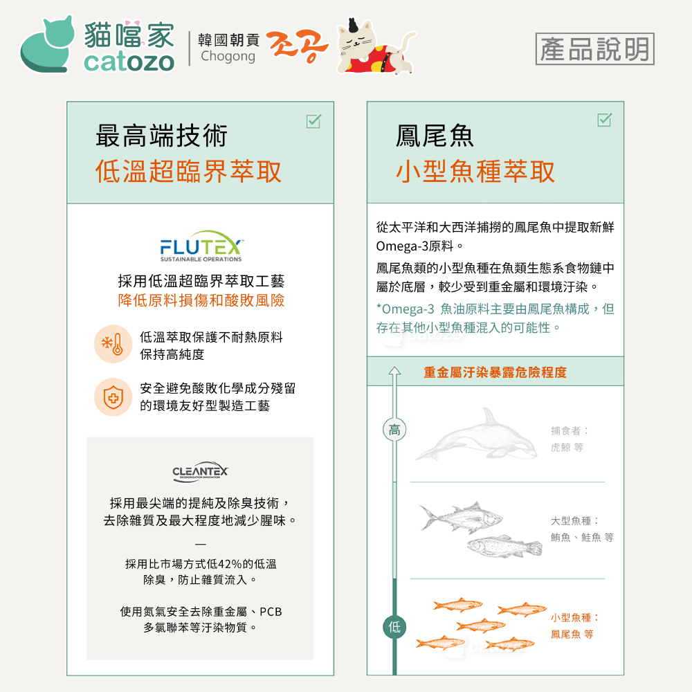 .鳳尾魚等小型魚種,使用低溫萃取法
