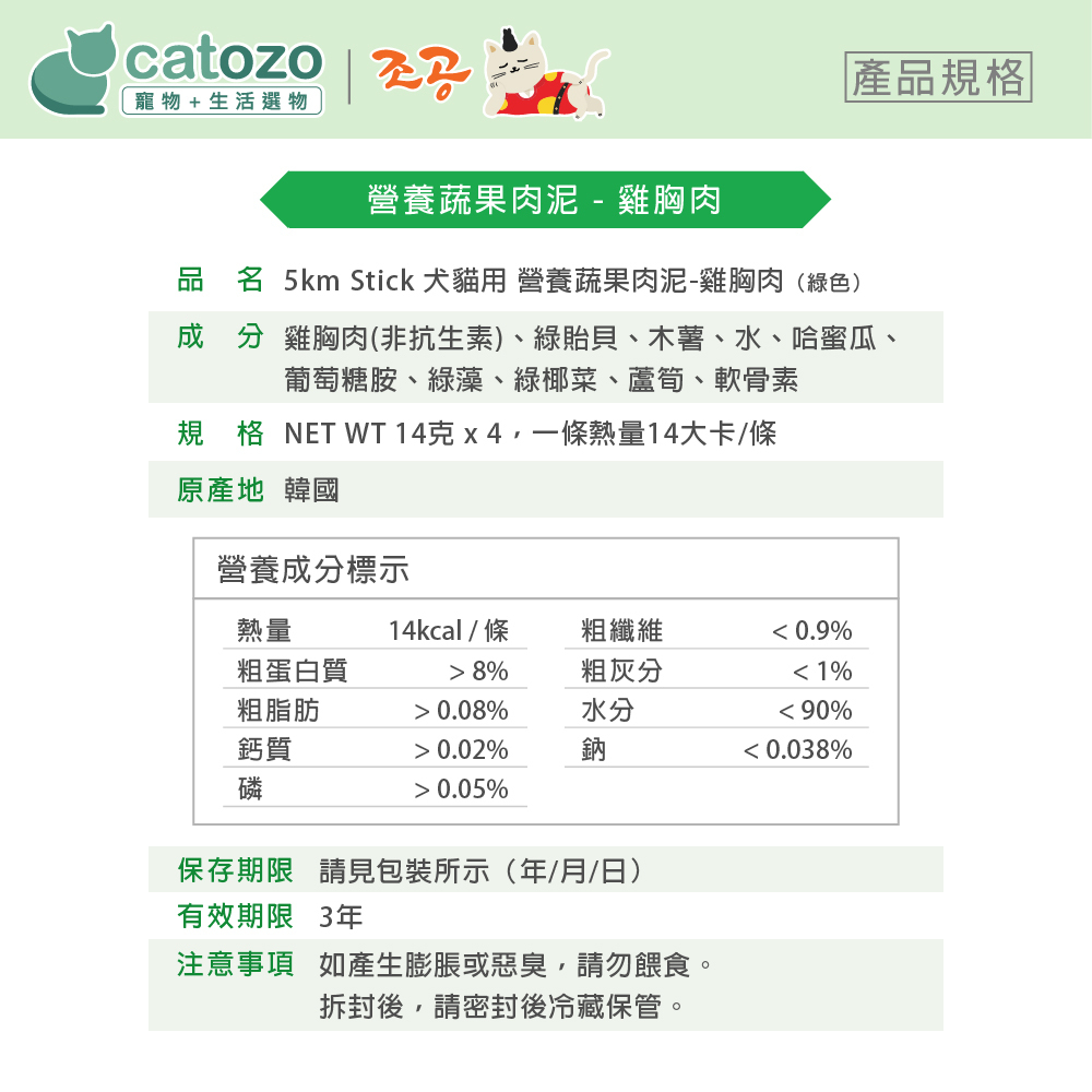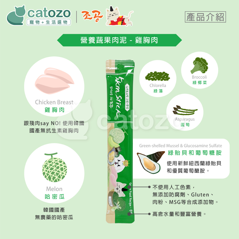 韓國朝貢// 5km Stick 犬貓用 營養蔬果肉泥-哈密瓜貽貝 雞胸肉(綠色)
