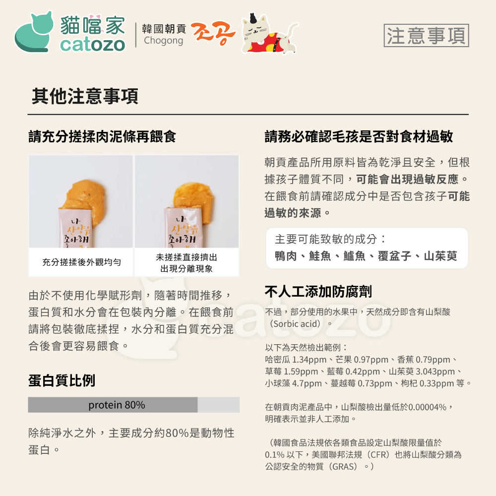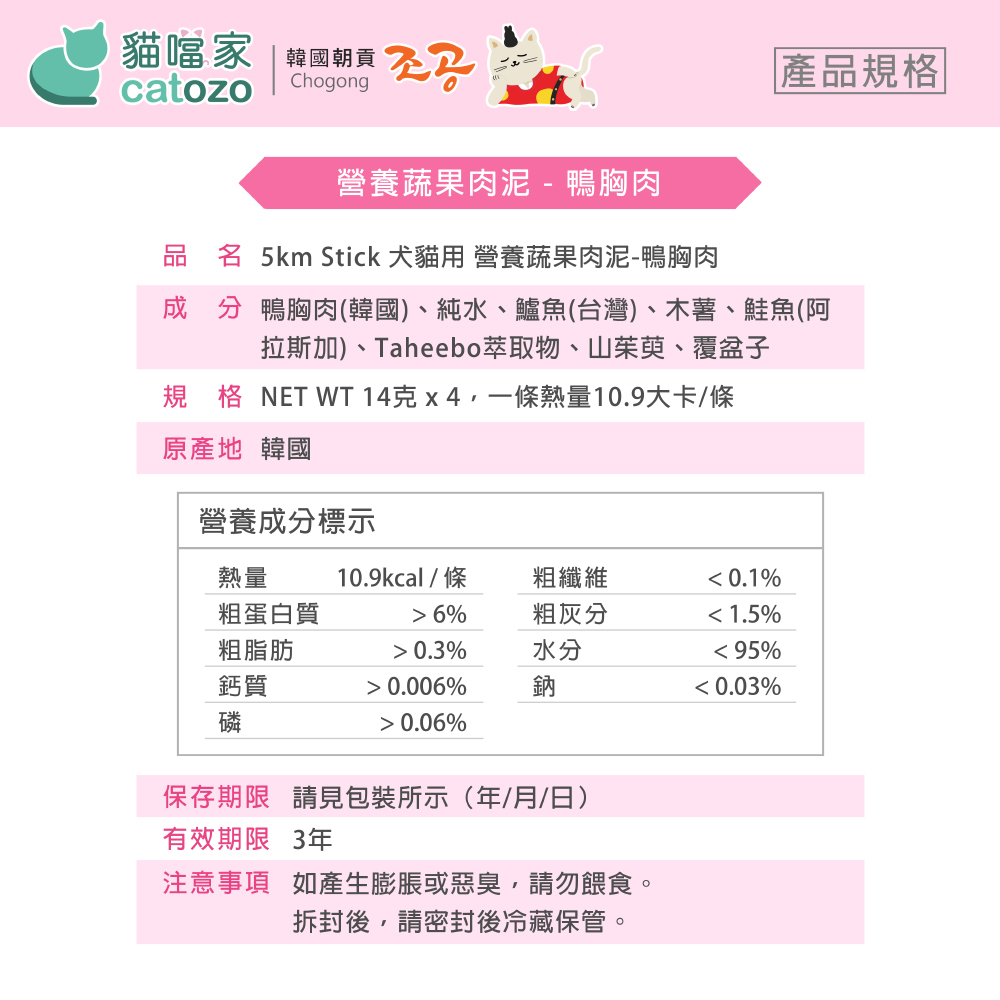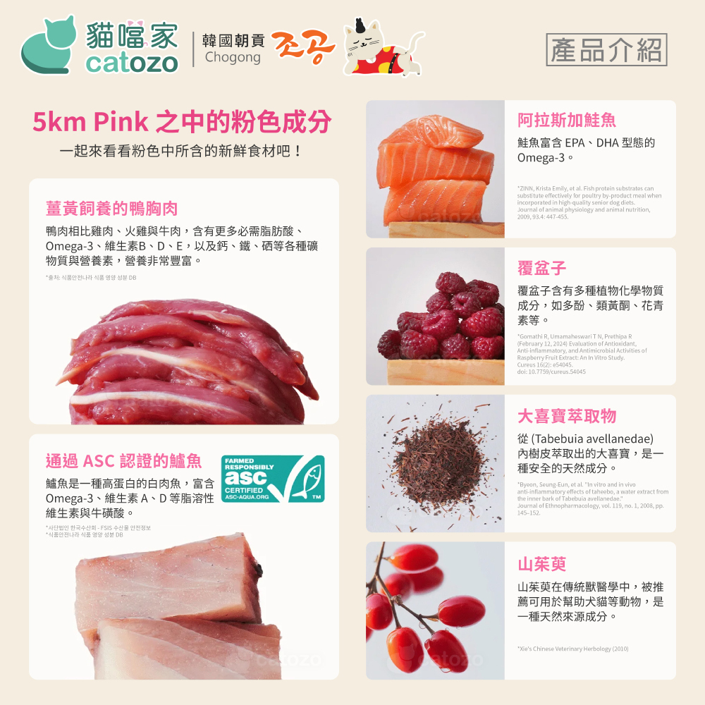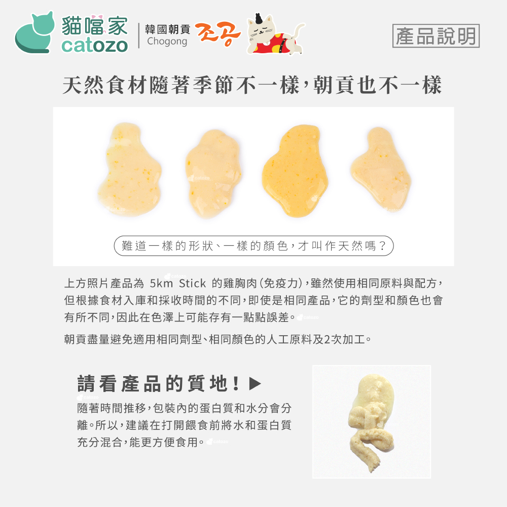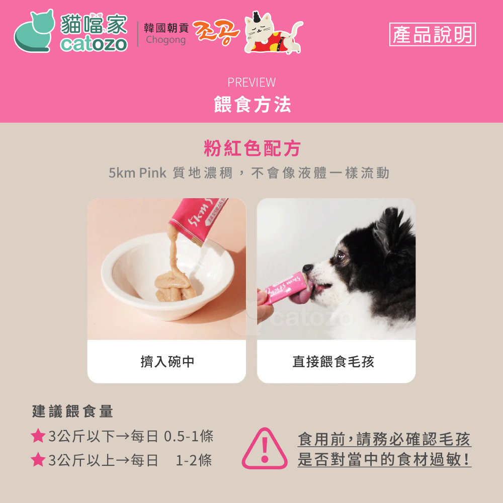朝貢조공 Chogong 是來自韓國的寵物零食品牌,5km系列肉泥以人食用級的食材製作新鮮營養的寵物零食。