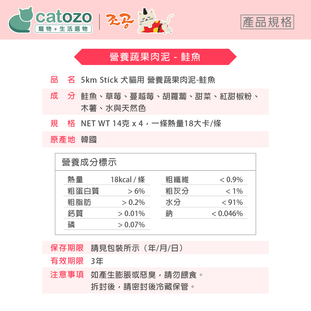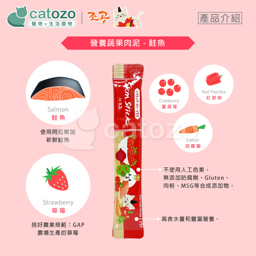 韓國朝貢// 5km Stick 犬貓用 營養蔬果肉泥-草莓紅甜椒 鮭魚(紅色)