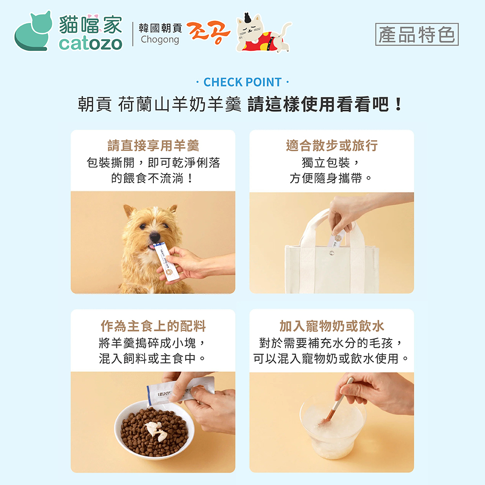 不會流動,方便餵食的羊羹/果凍型態,加入100%優質荷蘭山羊奶。口感柔軟,香濃美味,餵食無負擔。